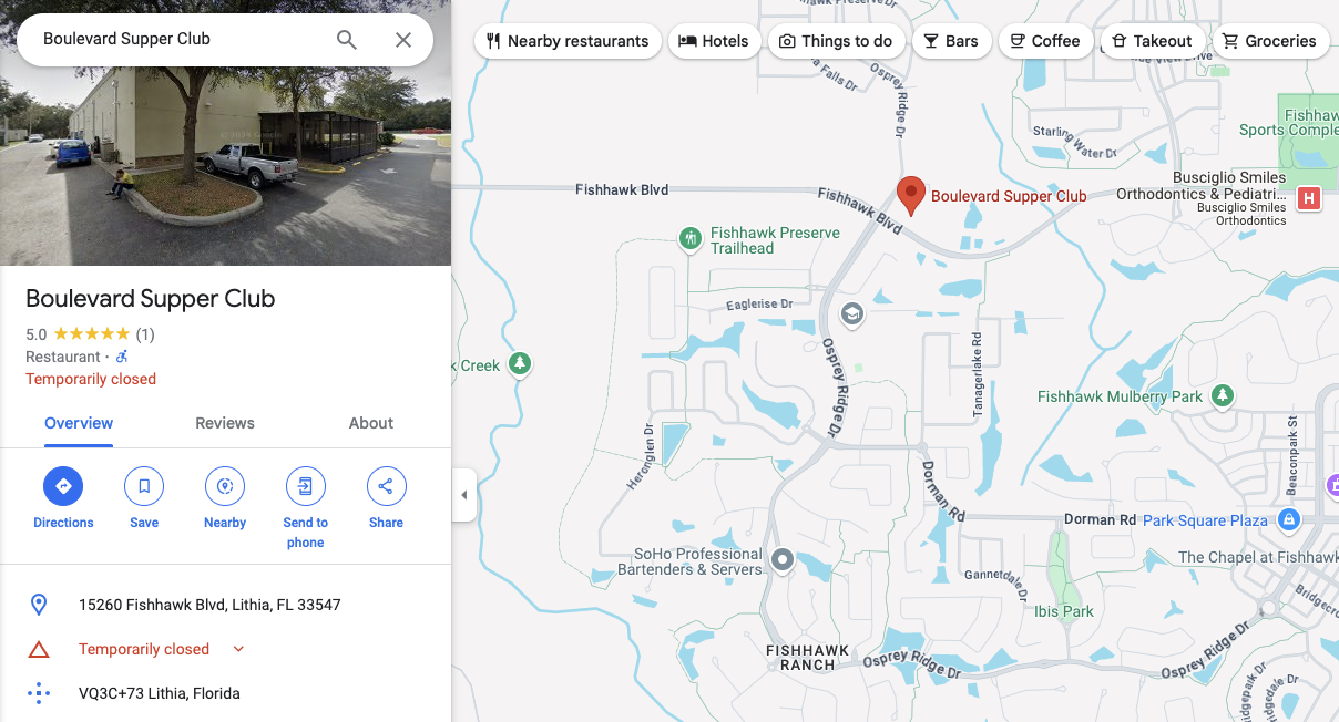 References for Boulevard Supper Club in Lithia, FL 33547